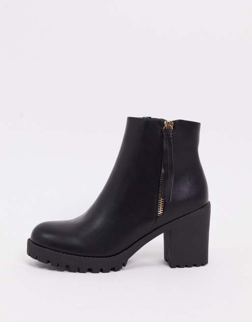 Lipsy cleated sole zip detail heeled ankle boots in black ASOS