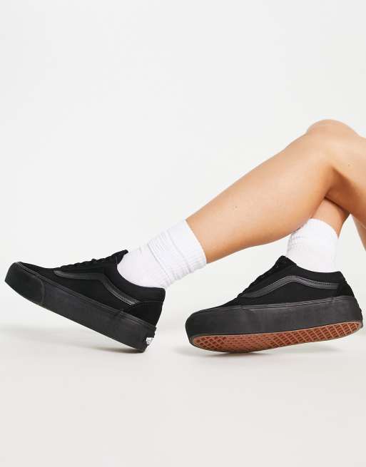 Vans triple black clearance platform, Vans Authentic Platform 2.0 Embossed Black Black Skate Shoes clearance