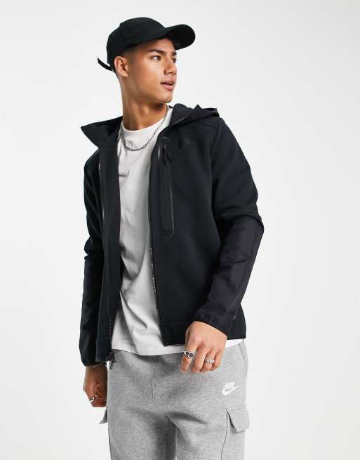 Nike tech fleece overlay zip thru hoodie in black ASOS