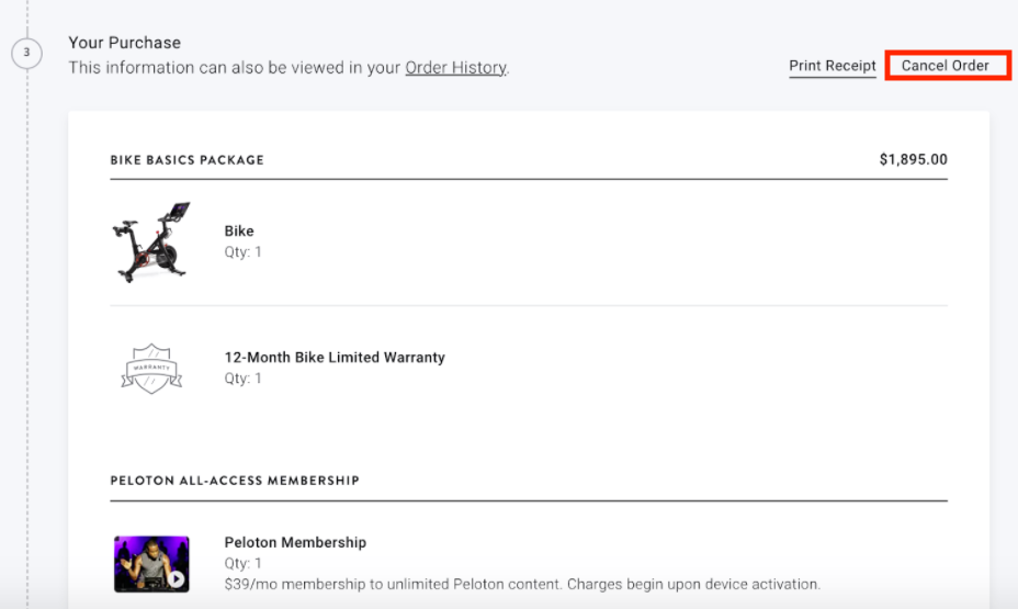 Peloton order clearance