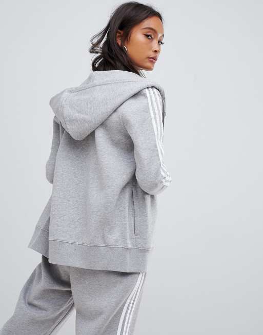Adidas originals three stripe clearance zip thru hoodie in grey