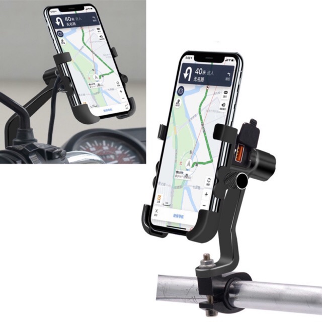 Aluminum Motorcycle Phone Holder Mount with USB Charger COD