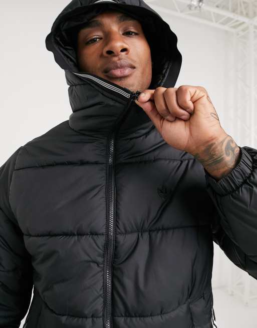 adidas Originals three stripe padded jacket in black