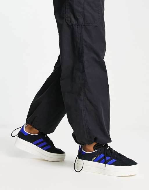 adidas Originals Gazelle Bold platform trainers in black and blue