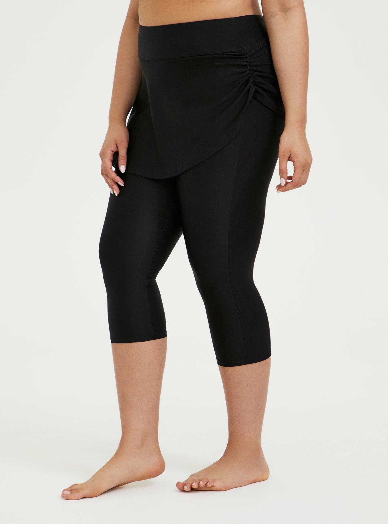 Plus Size Black Ruched Skirt Overlay Capri Swim Legging Torrid
