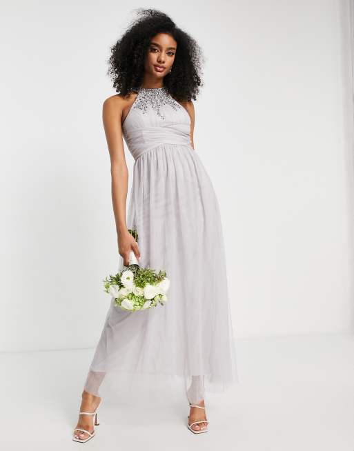 Little Mistress Bridesmaid embellished maxi dress in gray