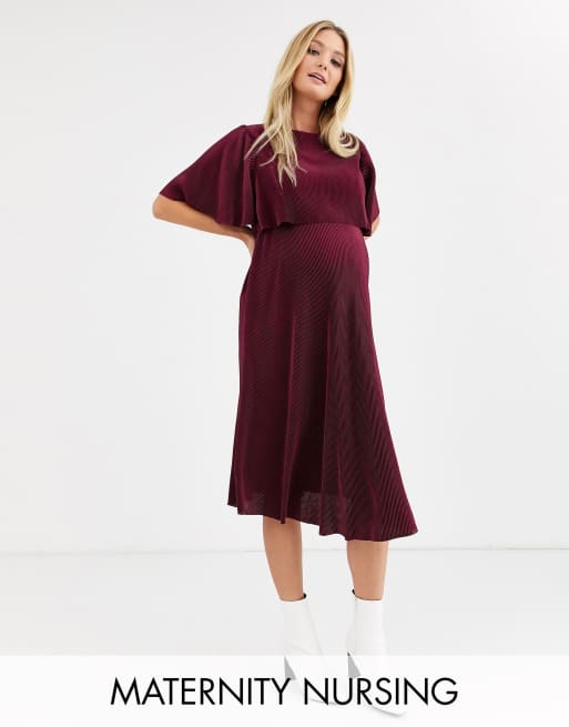 Asos clearance nursing dress, ASOS DESIGN Maternity Nursing crop top plisse midi dress clearance