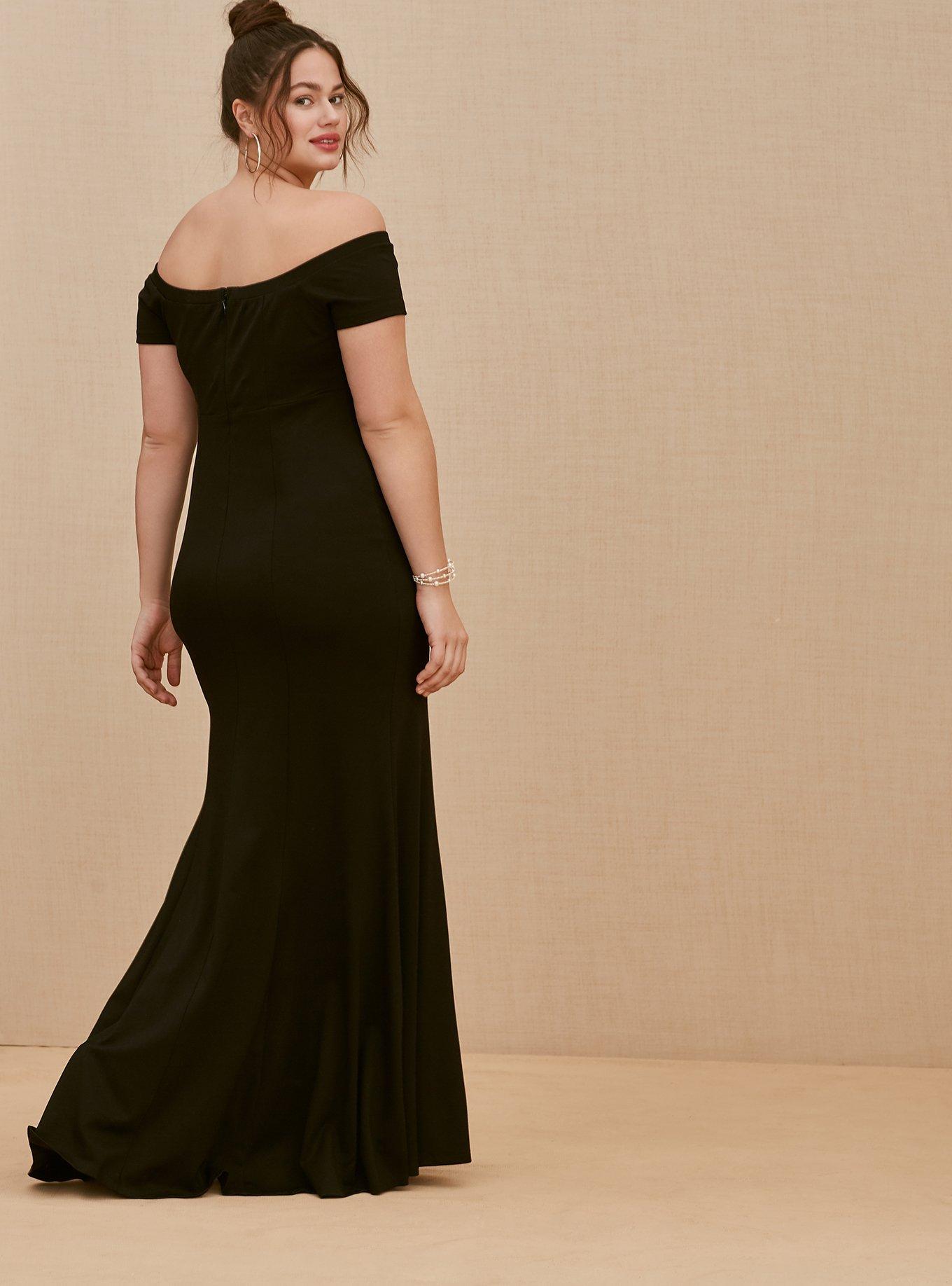 Plus Size Special Occasion Black Ponte Off Shoulder Gown Torrid