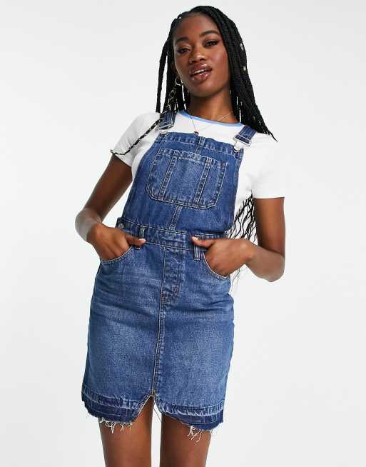 Asos clearance dungaree dress, DTT denim dungaree dress with raw hem in blue clearance