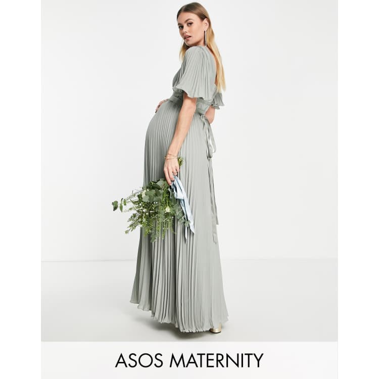 ASOS DESIGN Maternity Bridesmaid pleated flutter sleeve maxi dress