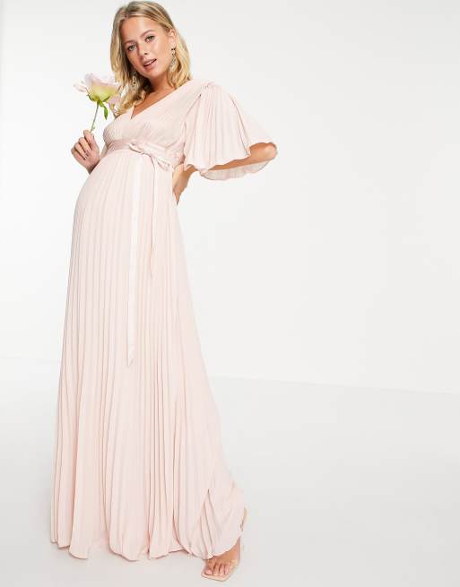 Asos clearance maternity bridesmaid, ASOS DESIGN Maternity Bridesmaid pleated flutter sleeve maxi dress with satin wrap waist clearance
