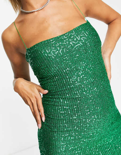 Asos green sequin clearance dress, Vesper sequin cami strap midi dress in green clearance