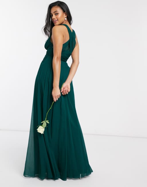 ASOS DESIGN Bridesmaid ruched bodice drape maxi dress with wrap