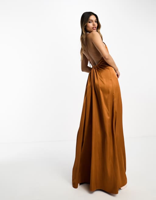 ASOS DESIGN low back satin jumpsuit in burnt orange