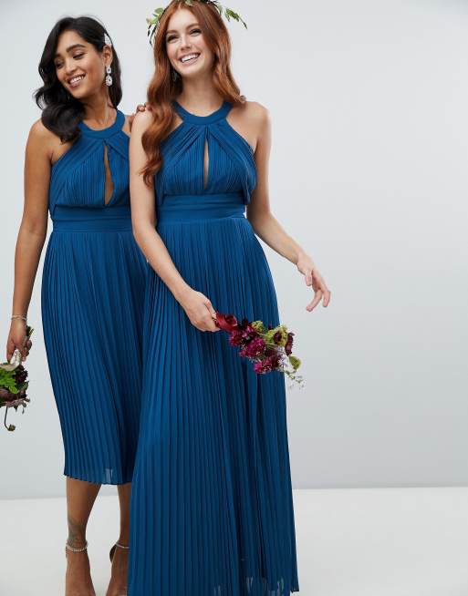 TFNC pleated bridesmaids midi dress in petrol blue
