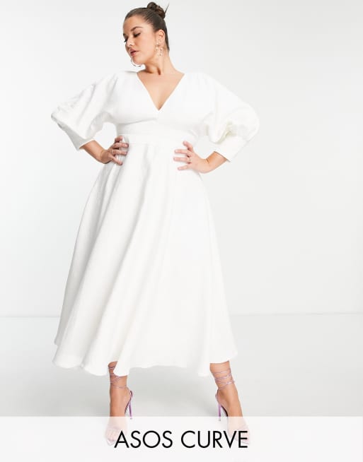 ASOS EDITION Curve blouson sleeve midi dress in texture in white