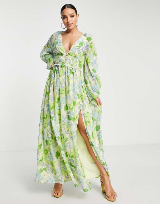 ASOS EDITION organza blouson sleeve midi dress in yellow floral