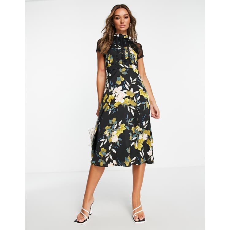 Liquorish a line lace detail midi dress in floral print ASOS