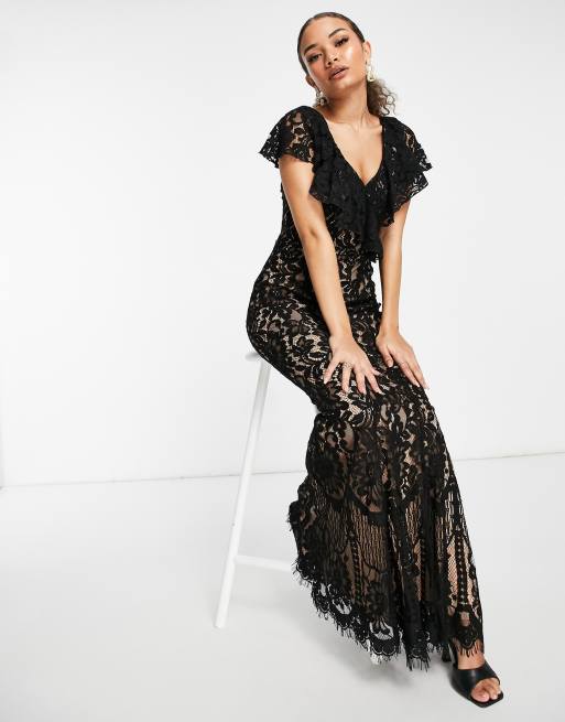 Asos goddiva clearance, Goddiva fishtail lace maxi dress in black ASOS clearance