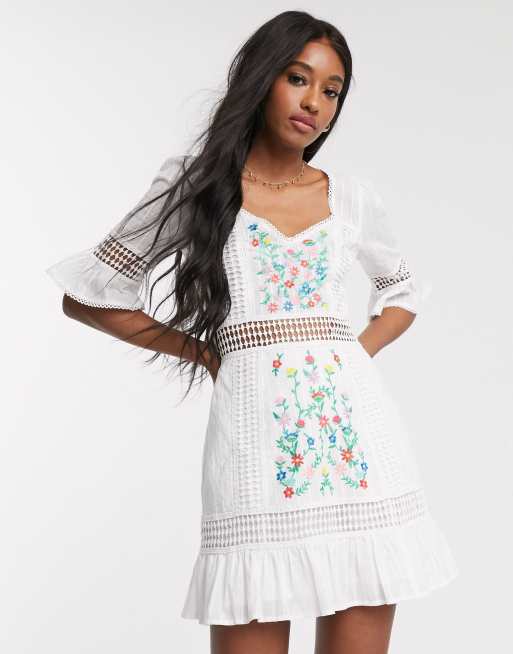 Asos white embroidered clearance dress, ASOS EDITION mini dress with mosaic embroidery in white clearance