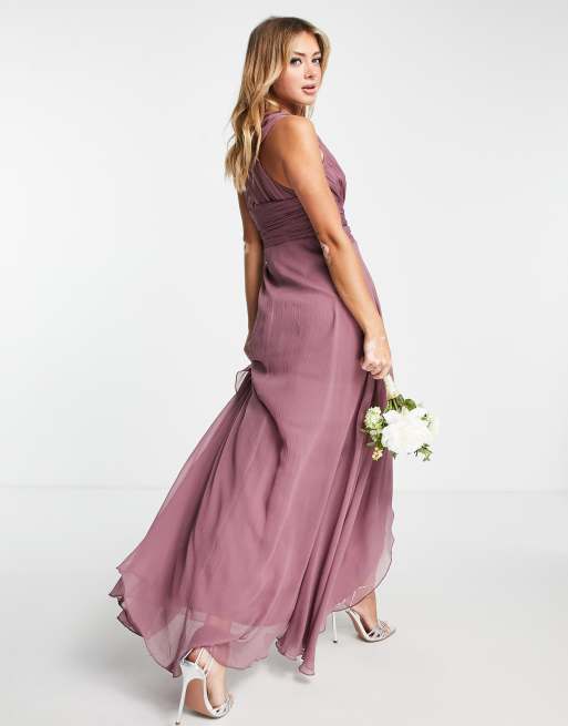 Asos clearance plum dress, ASOS DESIGN Bridesmaid ruched bodice maxi dress with layered wrap skirt in mauve clearance