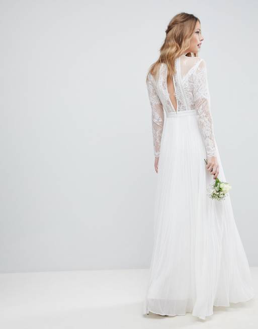 Asos edition long sleeve lace bodice clearance maxi wedding dress with pleated skirt