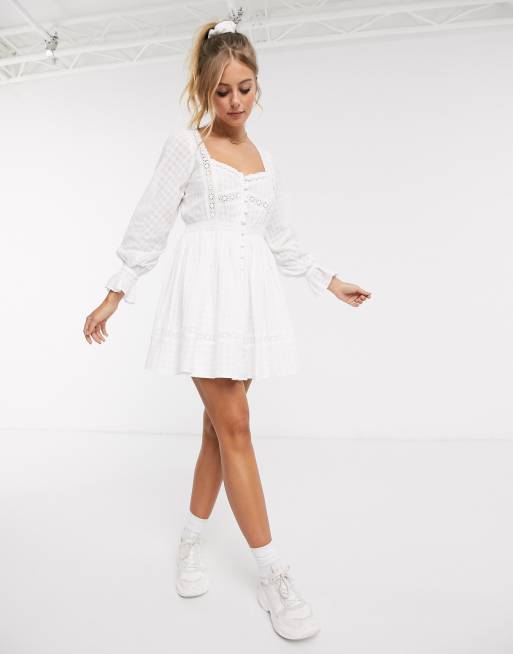 ASOS DESIGN button through lace insert mini dress with elasticated waist in white