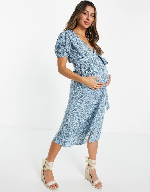 Asos maternity wrap clearance dress, Influence Maternity wrap front midi dress in blue ditsy floral clearance