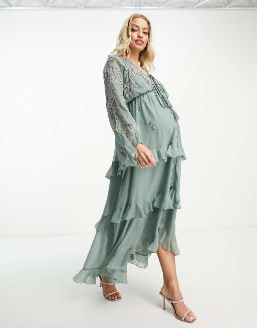 Asos maternity new clearance in, ASOS DESIGN Maternity soft midi dress with button front and trailing floral embellishment in sage clearance