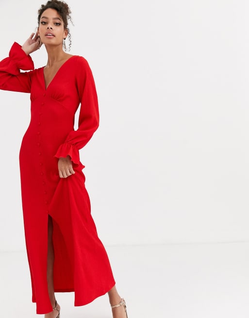 ASOS DESIGN button through textured maxi dress in red