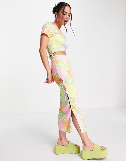 ASOS DESIGN short sleeve 2 in 1 midi dress in check and floral