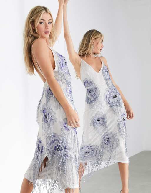ASOS EDITION cami midi dress with summer floral fringe