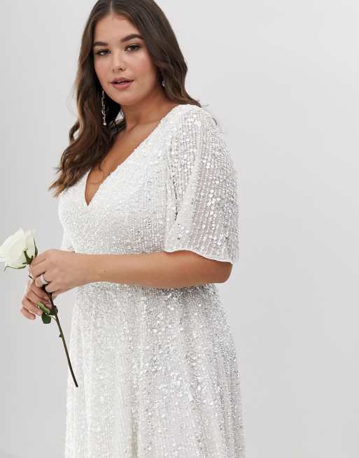 ASOS DESIGN Curve flutter sleeve sequin maxi wedding dress ASOS