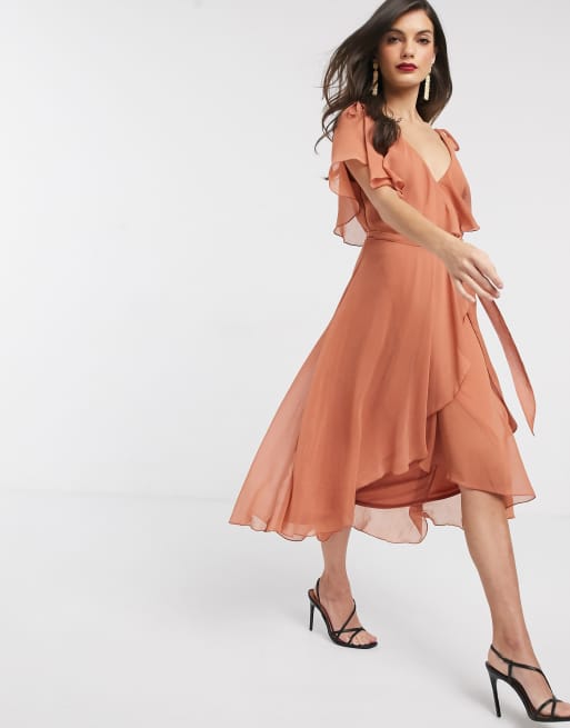 ASOS DESIGN midi split sleeve cape back dress with tie shoulder