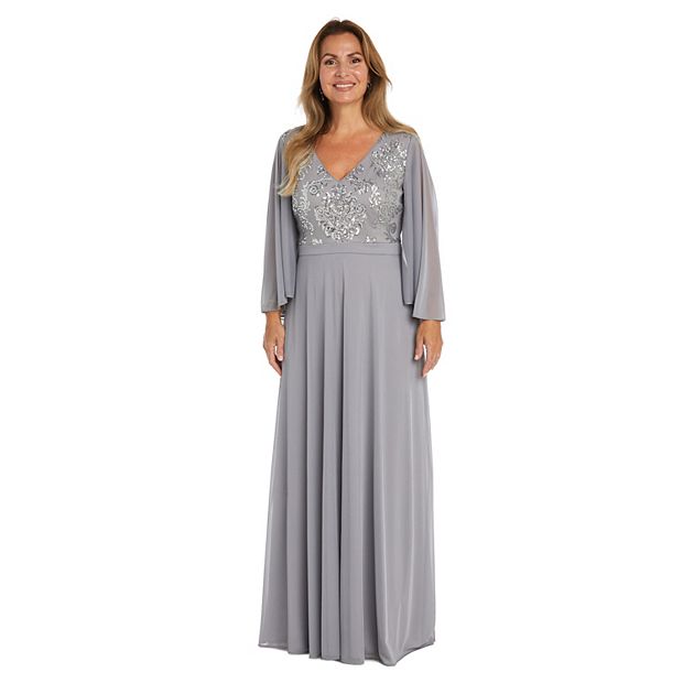 Women s R M Richards Embroidered Sequin Bodice Dress with Cape Sleeves