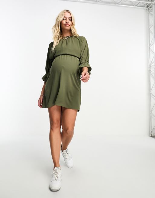 ASOS DESIGN Maternity nursing drawstring waist mini dress in khaki