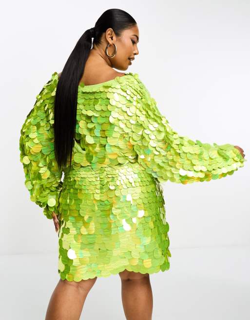 ASOS DESIGN Curve slouchy embellished mini dress in lime oversized disc