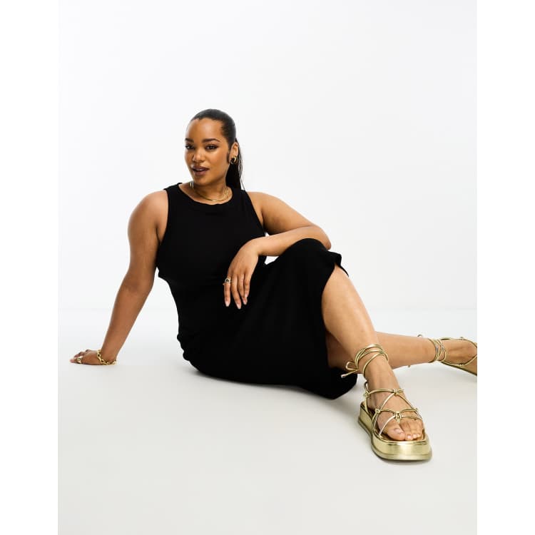 ASOS DESIGN Curve racer front ribbed midi tank dress in black