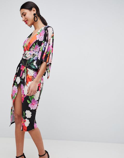 Asos kimono midi clearance dress, ASOS DESIGN slinky kimono midi dress in scarf print clearance