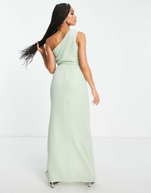 Yaura Bridesmaid drape one shoulder maxi dress in sage