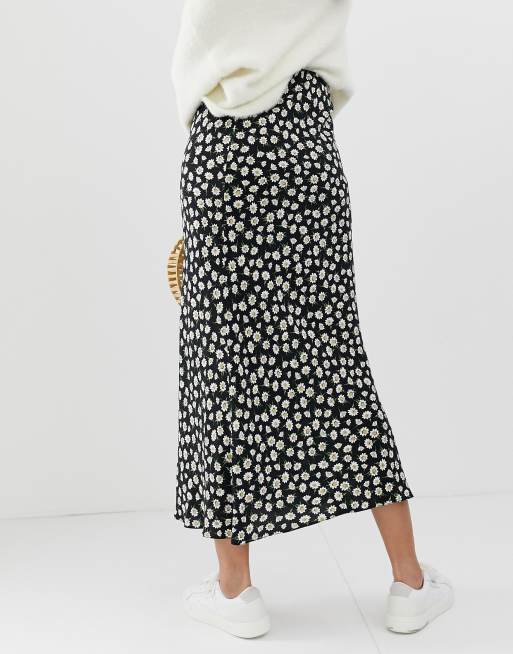 ASOS DESIGN daisy print bias cut maxi skirt