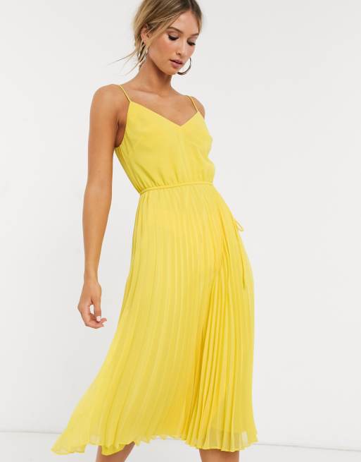 ASOS DESIGN pleated cami midi dress with drawstring waist in buttermilk yellow