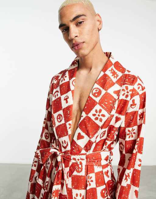 Asos dressing clearance, ASOS DESIGN co ord dressing gown in check ASOS clearance