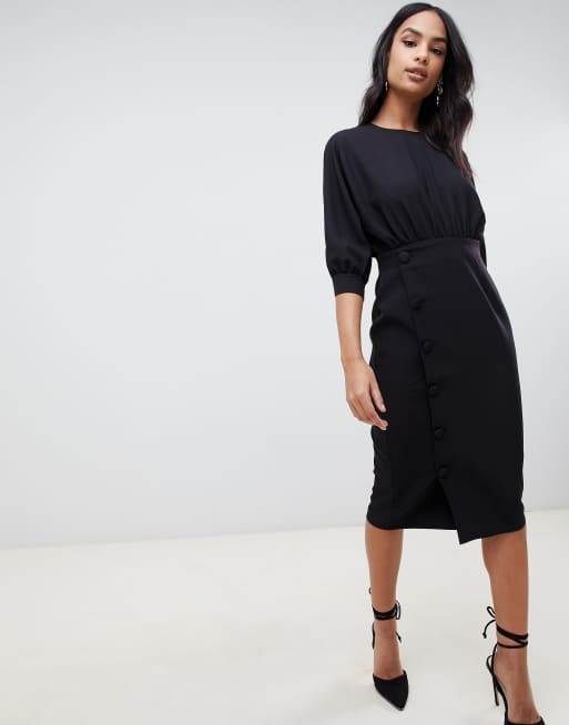 Asos midi pencil clearance dress, ASOS DESIGN bubble sleeve seamed midi pencil dress in forest green clearance
