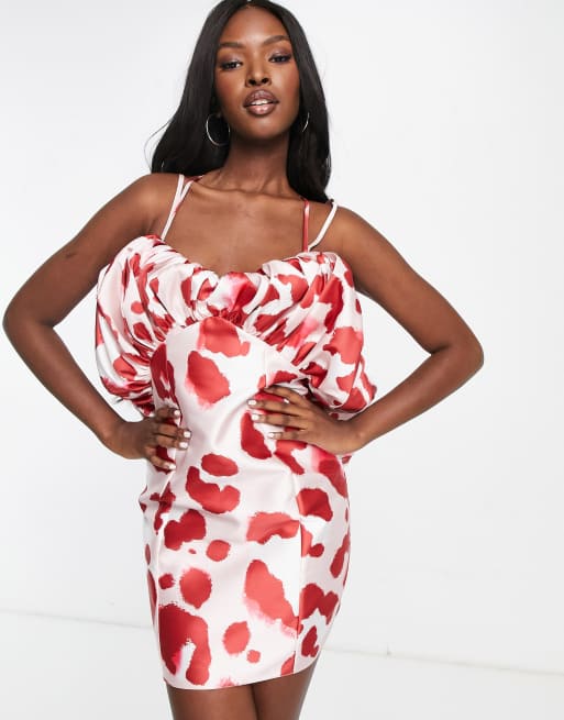 ASOS LUXE satin bubble halter mini dress in pink animal print ASOS