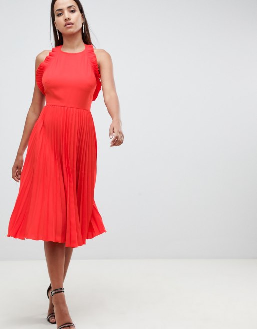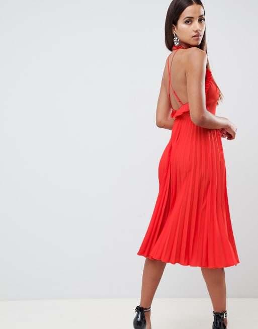 Asos pleated midi dress clearance with ruffle open back