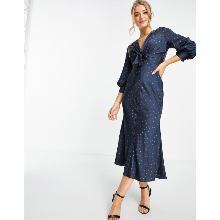 Asos tie front clearance dress, ASOS DESIGN satin tie front midi dress with button detail in micro clearance
