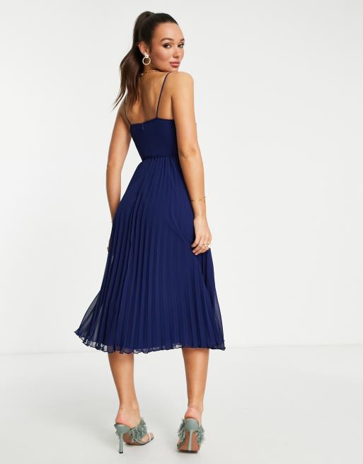 ASOS DESIGN pleated cami midi dress with drawstring waist in navy
