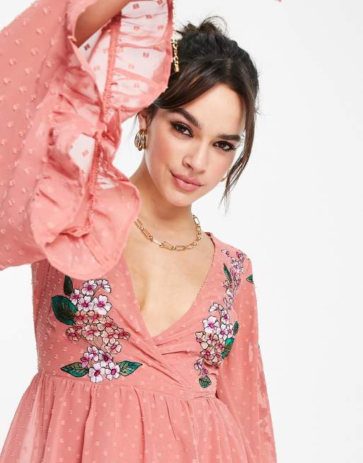 Asos floral skater clearance dress, ASOS DESIGN textured wrap mini skater dress with ruffles and clearance