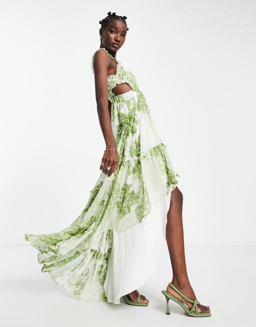 ASOS DESIGN waterfall dress with raw edge finish in green